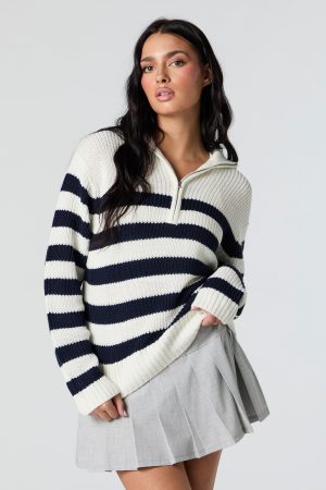 Striped Knit Quarter Zip Sweater