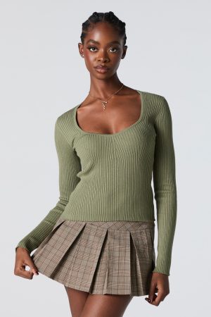 Ribbed Knit Sweetheart Sweater