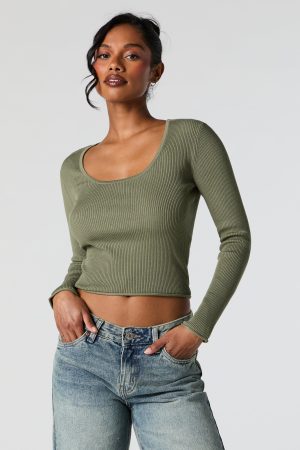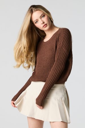Ribbed Knit Scoop Neck Skimmer Sweater