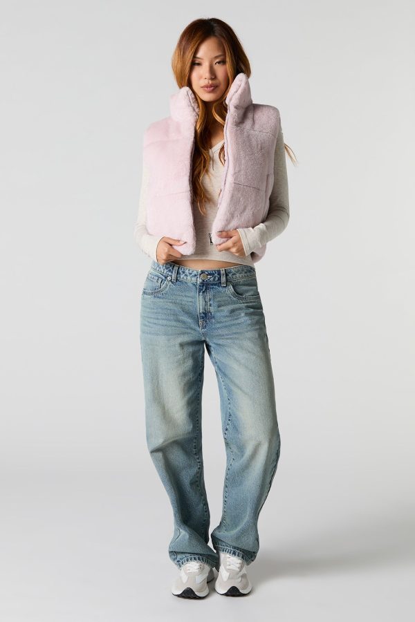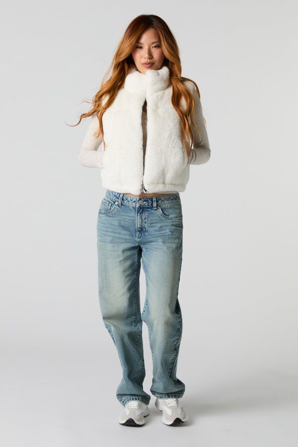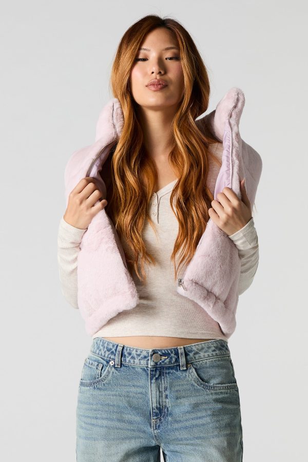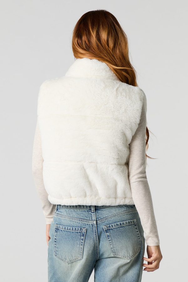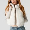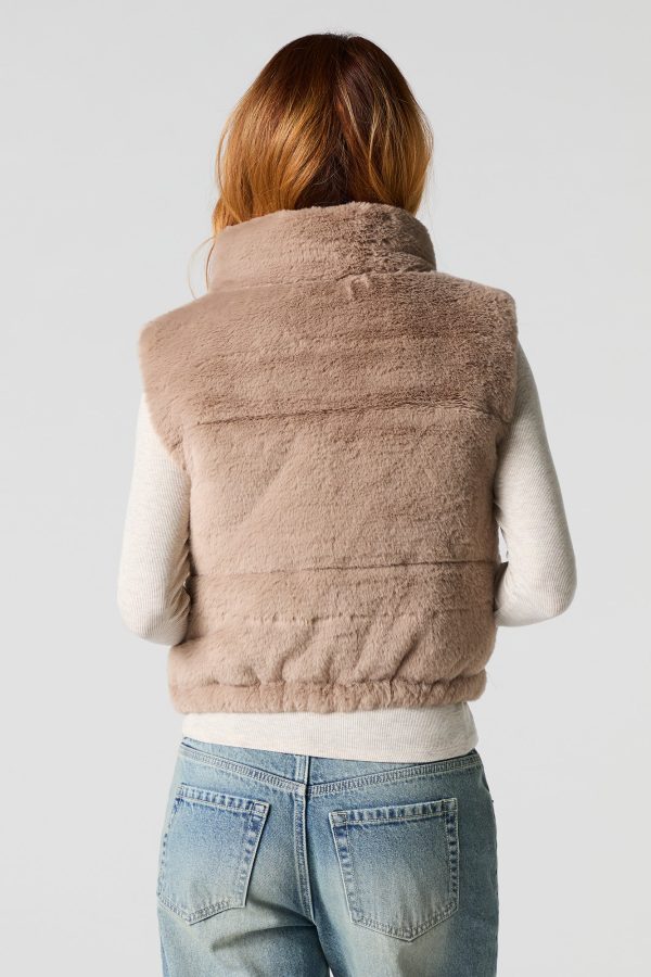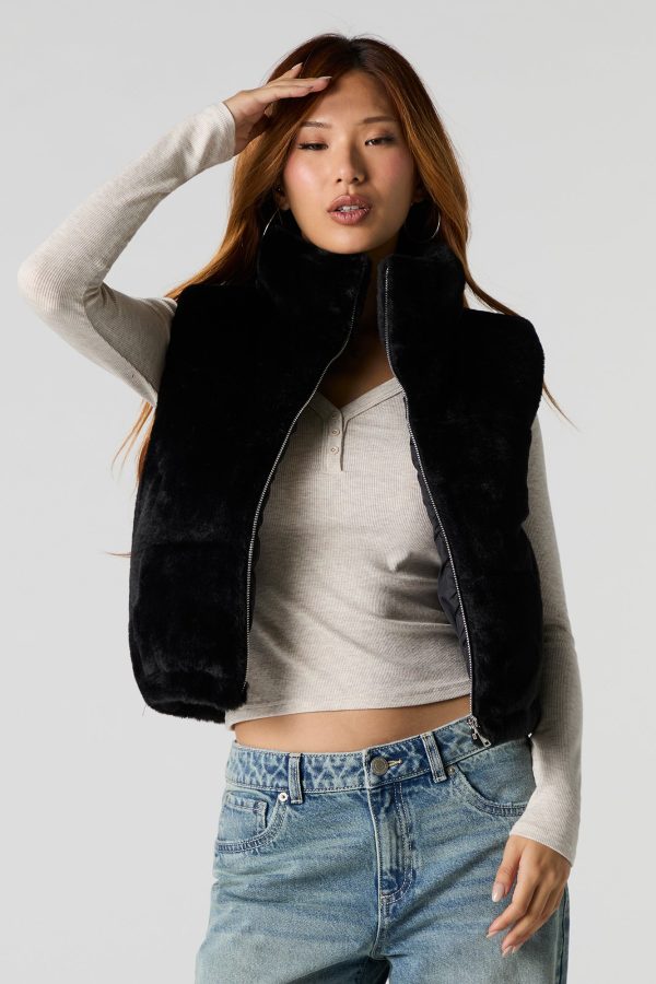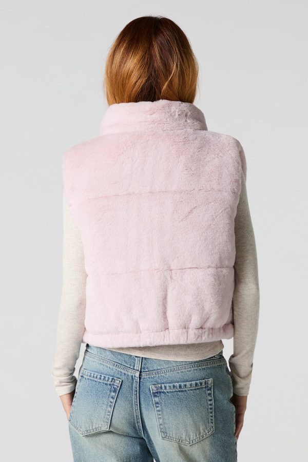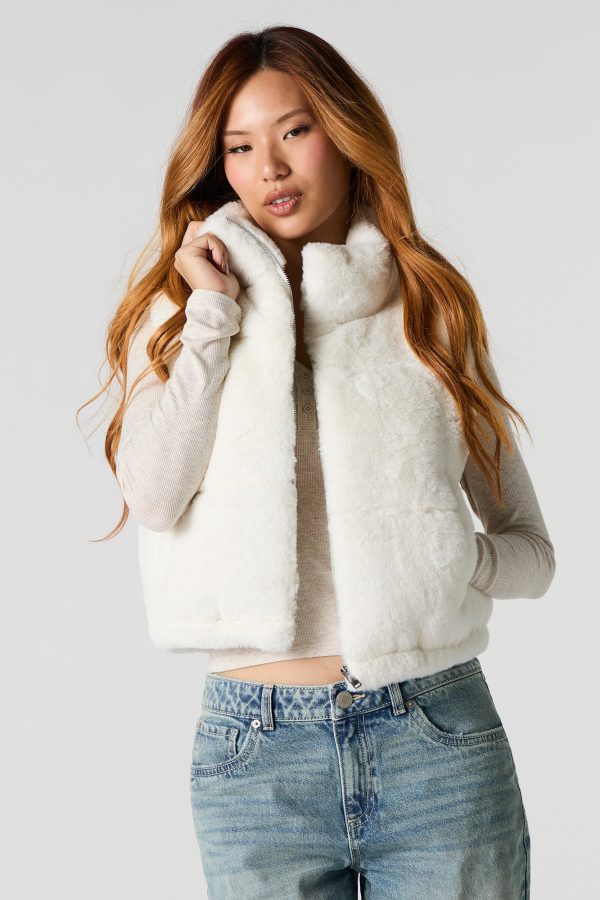 It’s giving snow diva. This vest features faux-fur material, puffer construction, mock neck, zip-up front, and pockets.