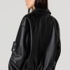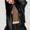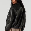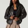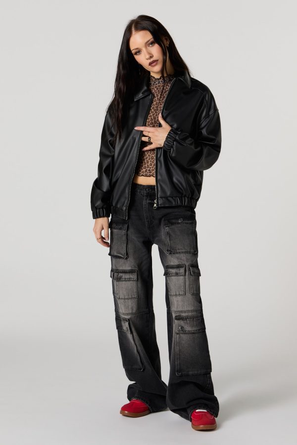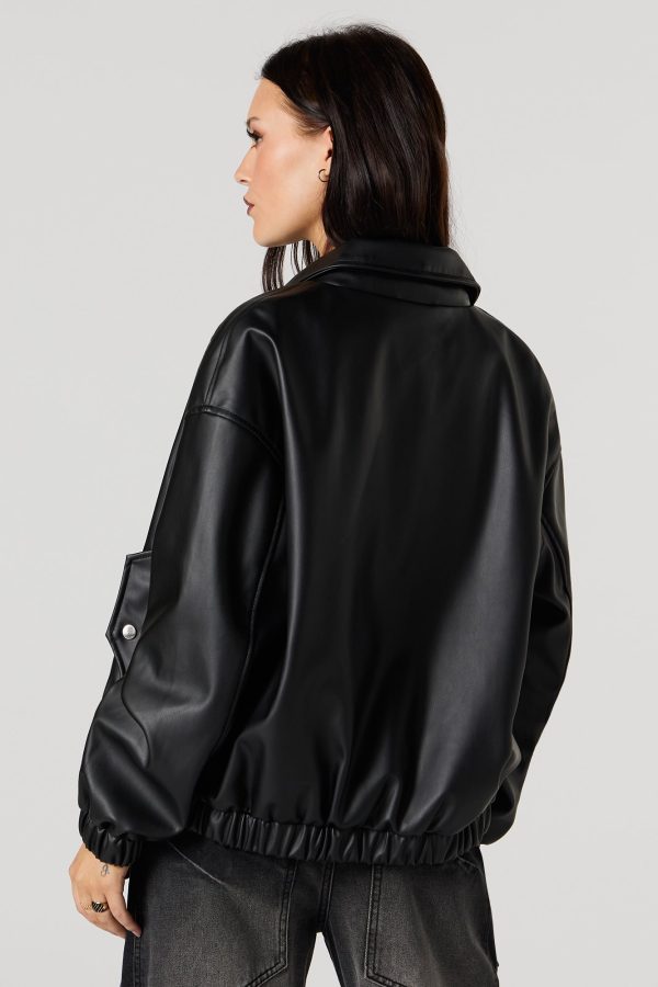 Add a little leather to your new season collection and thank us later. This jacket features faux-leather material, collared neckline, zip-up front, pockets, and long sleeves.