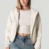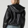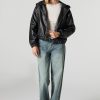 Add that extra ‘oomf’ to your new season fits with our faux-leather bomber. This jacket features faux-leather material, hood, zip-up front, pockets, long sleeves, and cinched cuffs and hem.