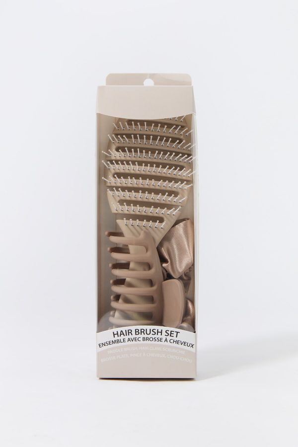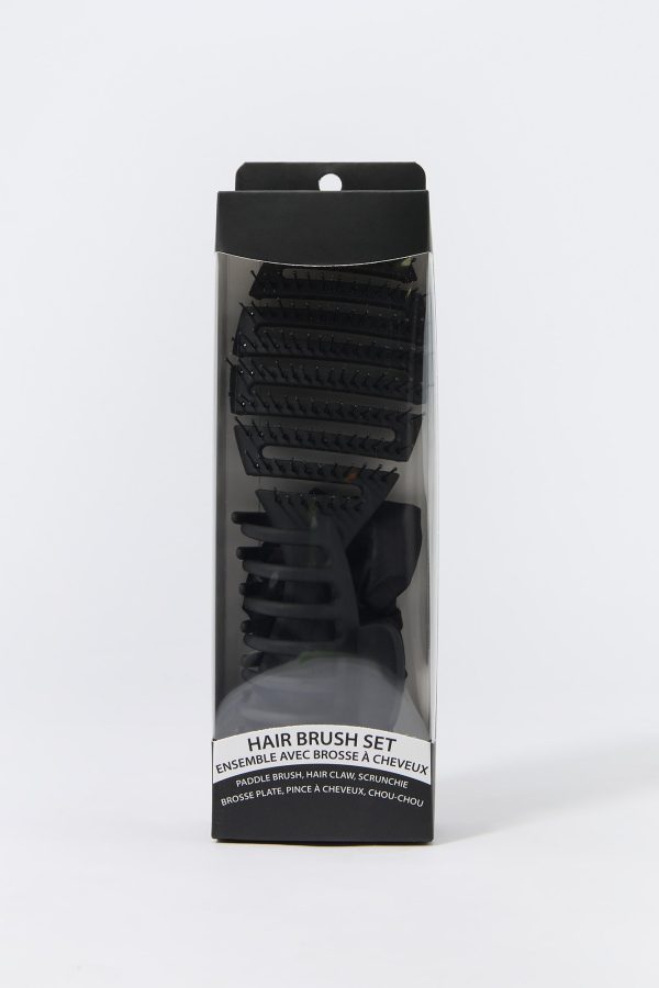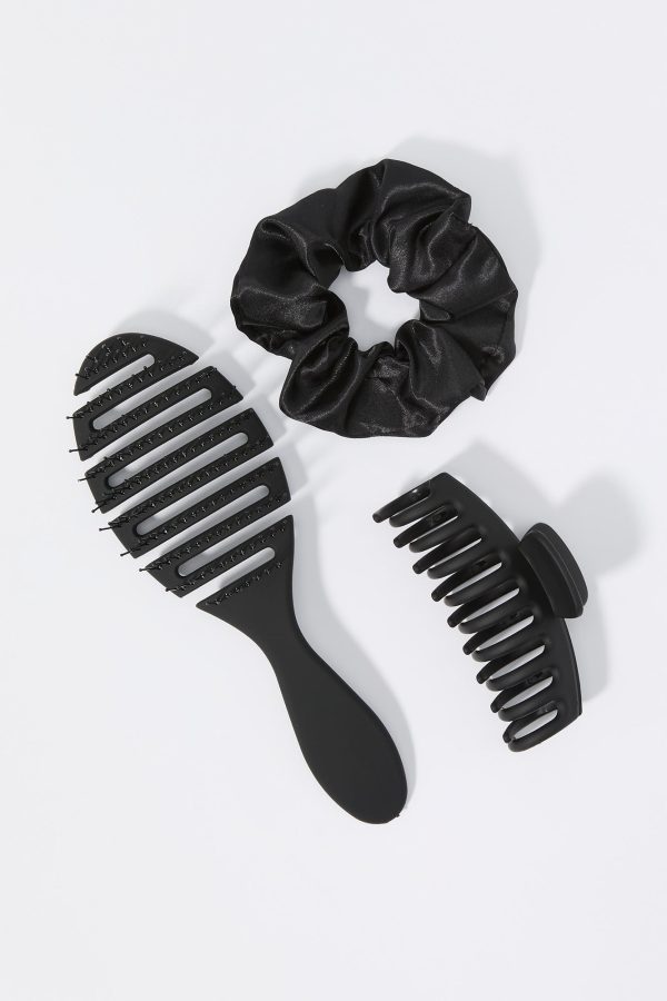 Keep your hair game on point with this convenient 3 piece set. This set comes with a paddle brush, hair claw, and satin scrunchie.