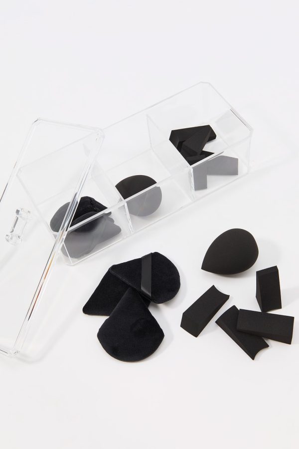 This makeup blender set comes with 8 makeup wedges, 6 beauty puffs, 2 makeup sponges, and bonus organizer.