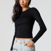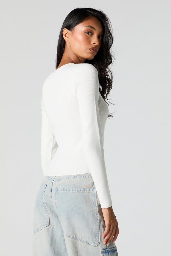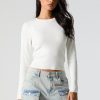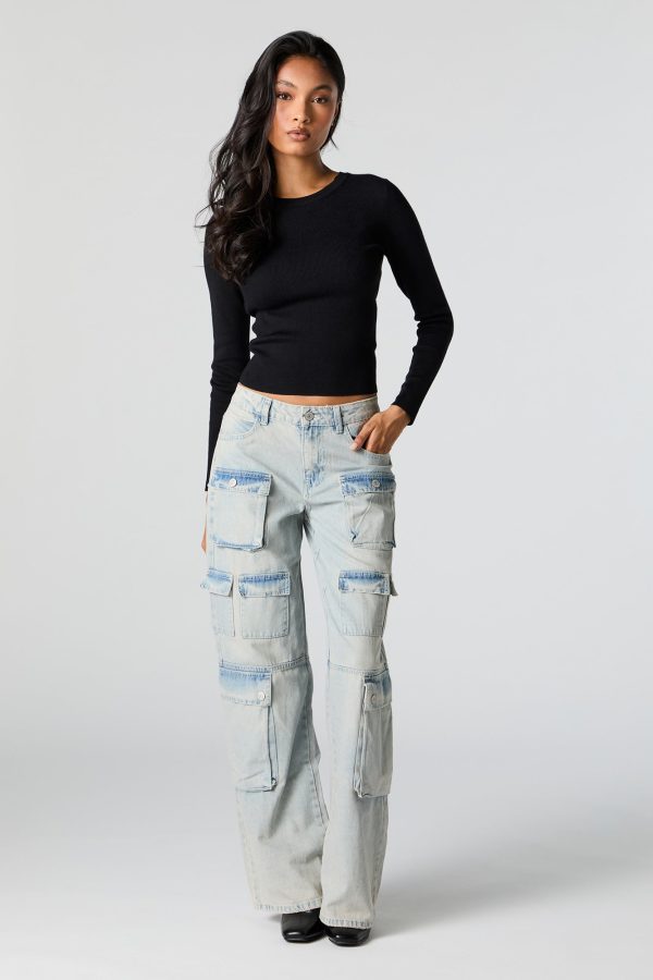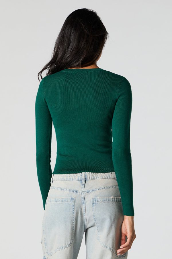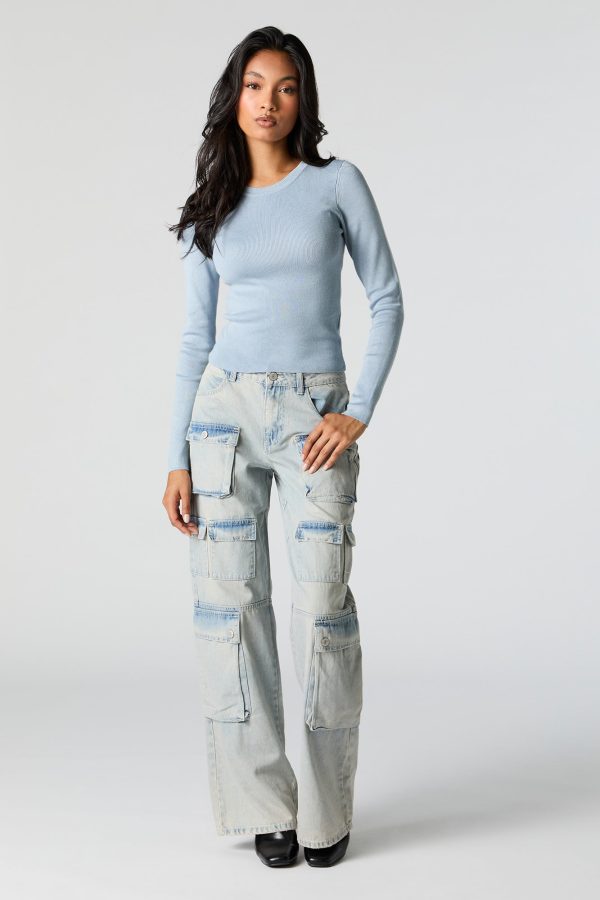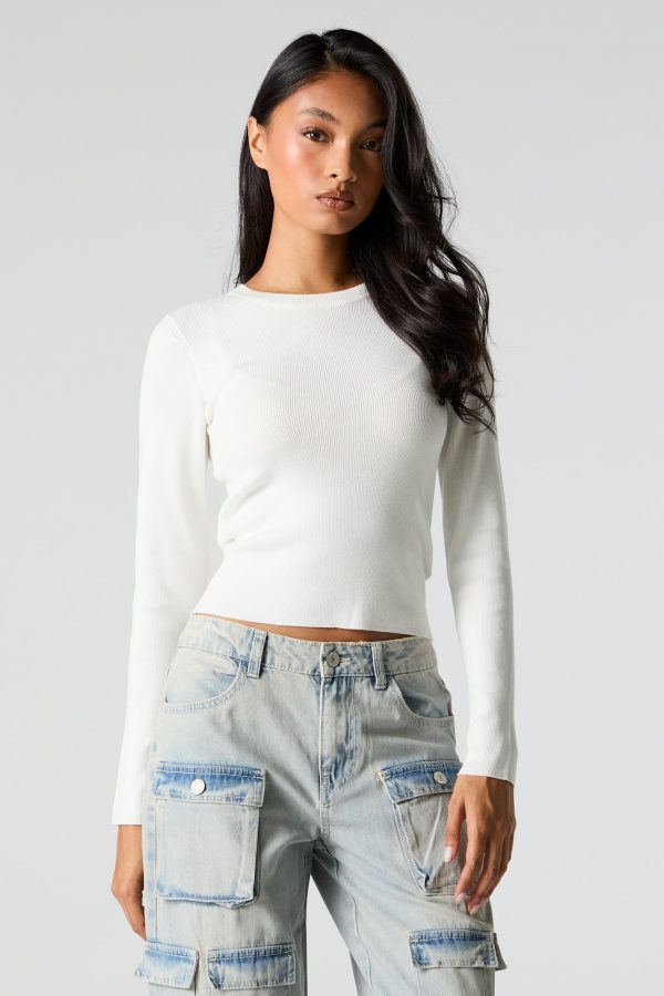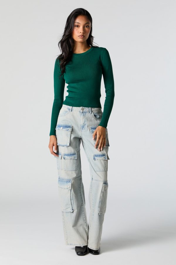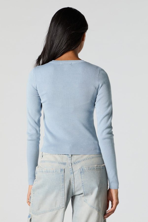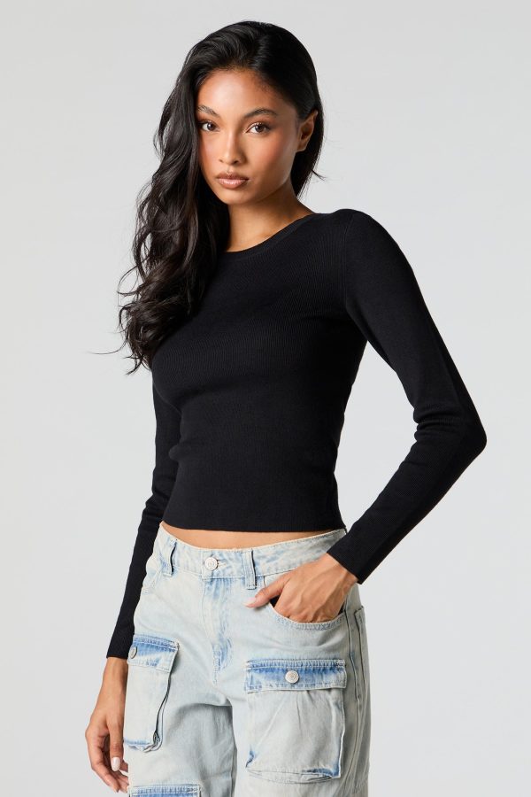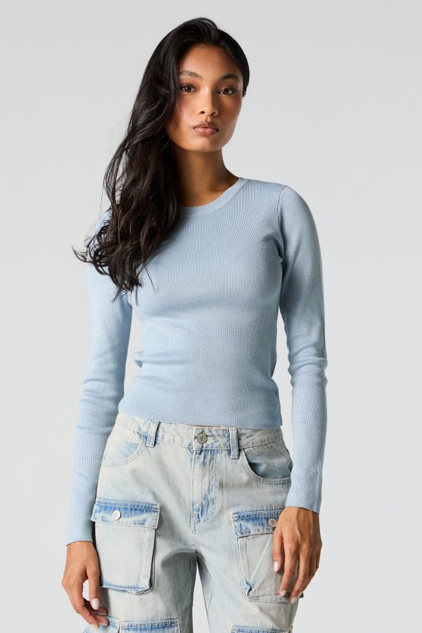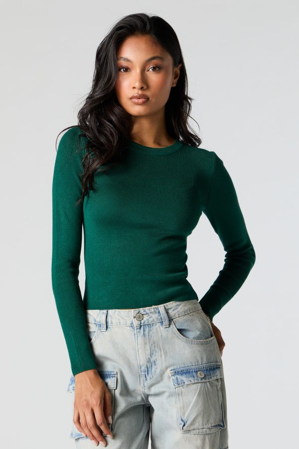 Ribbed Knit Crewneck Long Sleeve Sweater