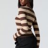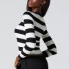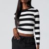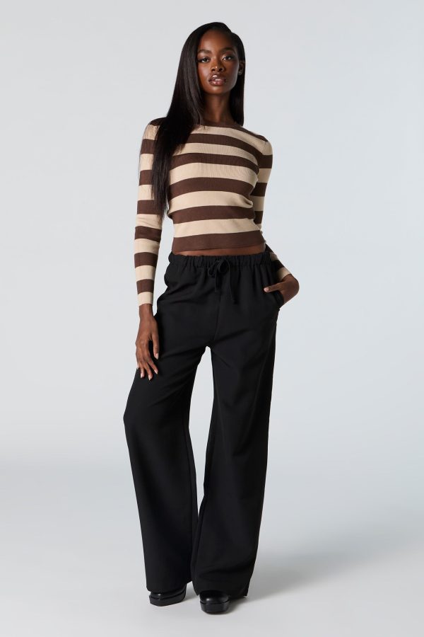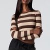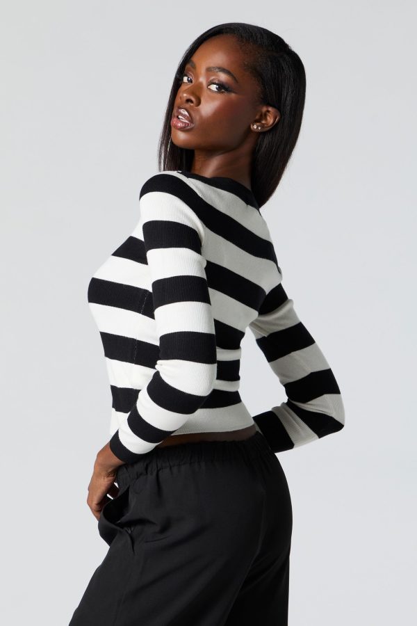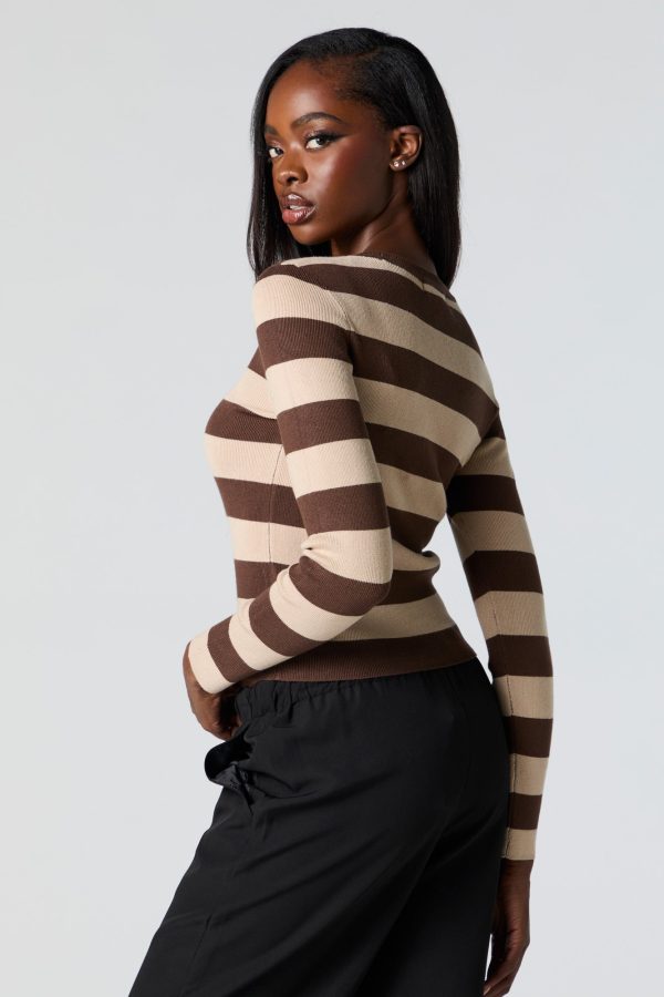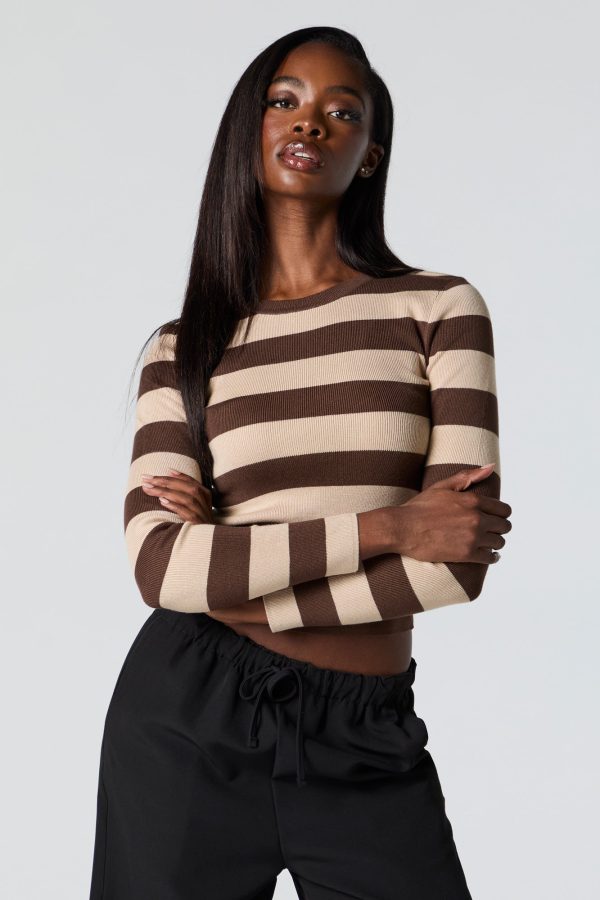 Everything’s better in a sweater. This sweater features ribbed striped knit material, crew neckline, long sleeves, and skimmer length.
