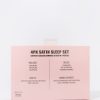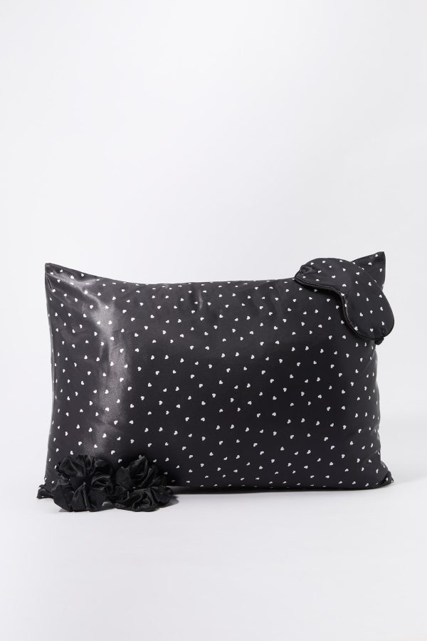 This gift set comes with a satin pillow case, satin sleep mask, and 2 satin scrunchies.