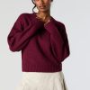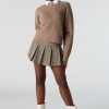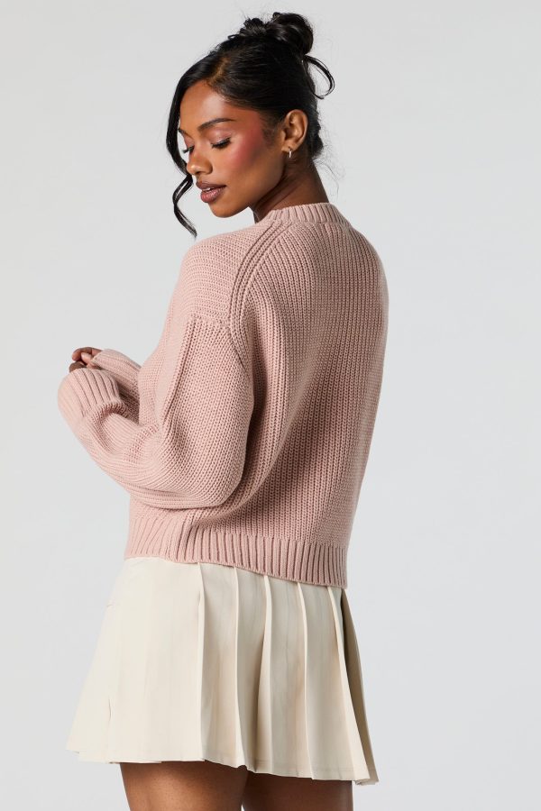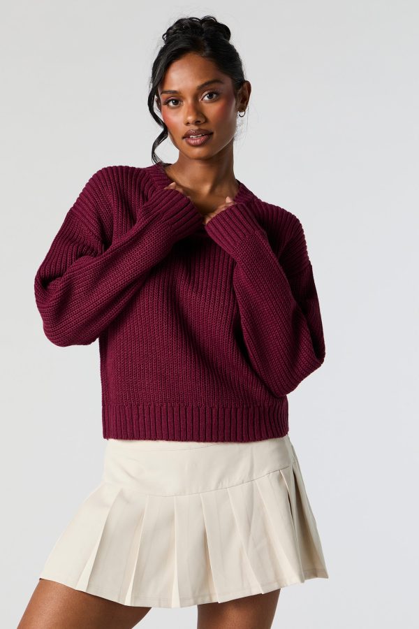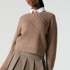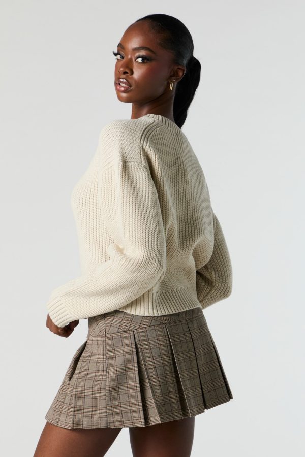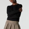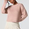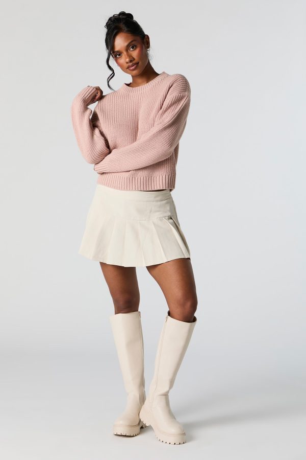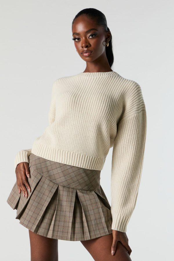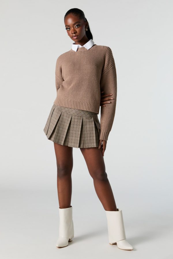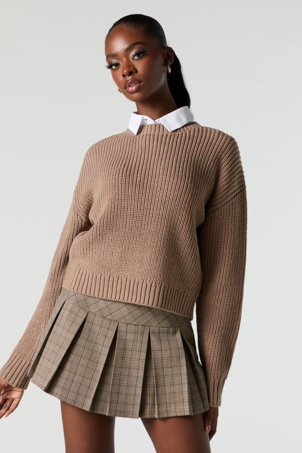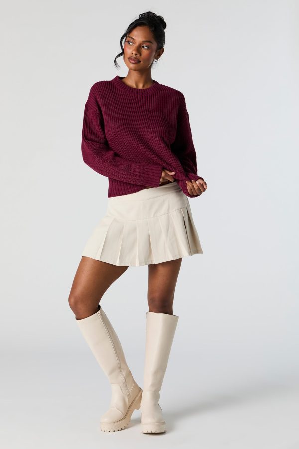 Solid Ribbed Knit Crewneck Skimmer Sweater