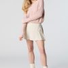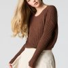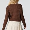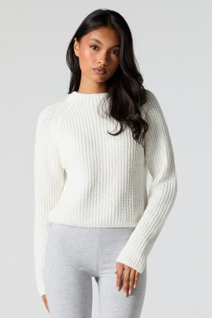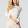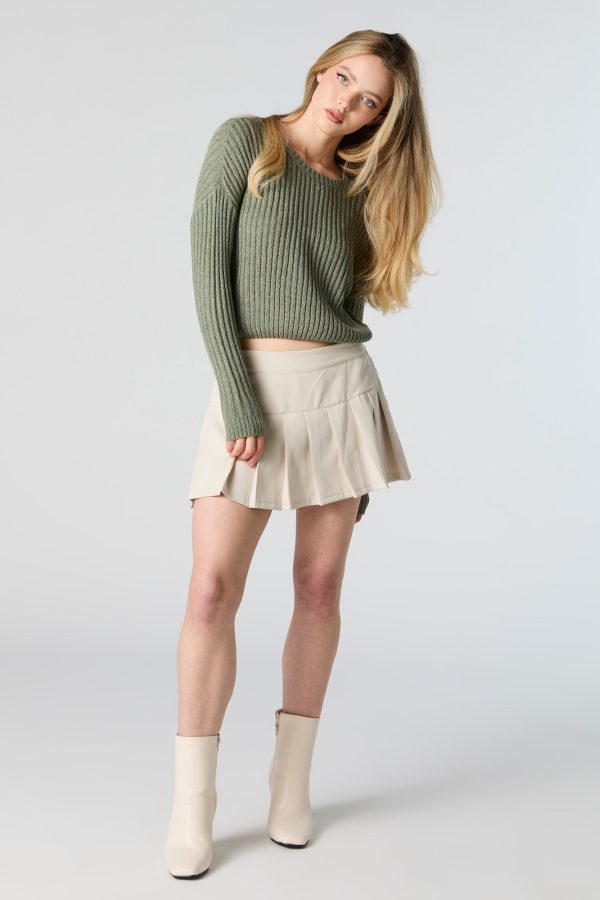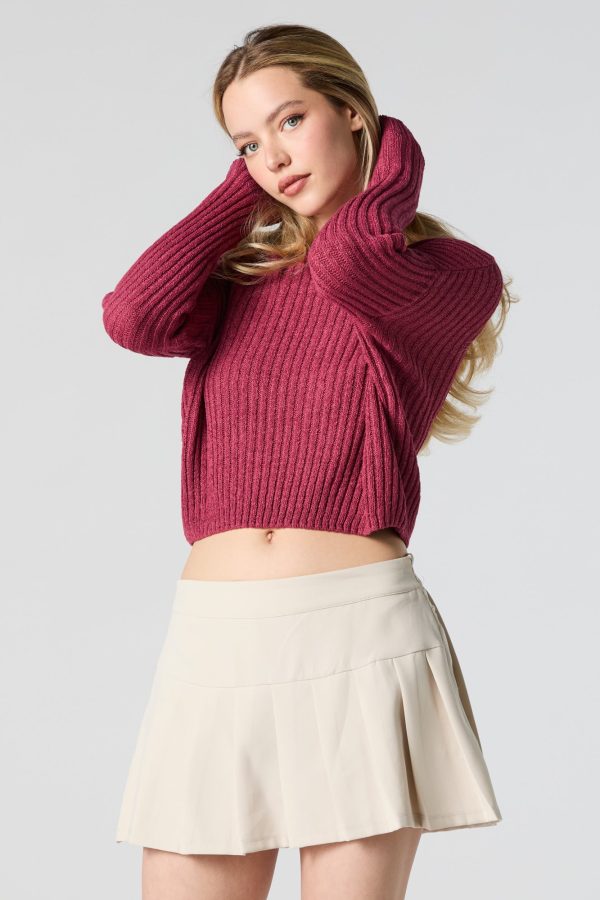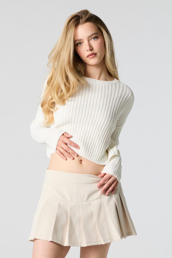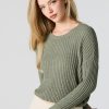 Better in a sweater. This sweater features wide ribbed knit material, crew neckline, long sleeves, and cropped hem.